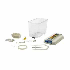 Ce distributeur, y compris la poignée, est fait de acier inoxydable avec un récipient en polycarbonate solide.