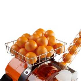 Cette machine est équipée d’un panier d’alimentation en acier inoxydable d’une capacité de 18 kg d’oranges.