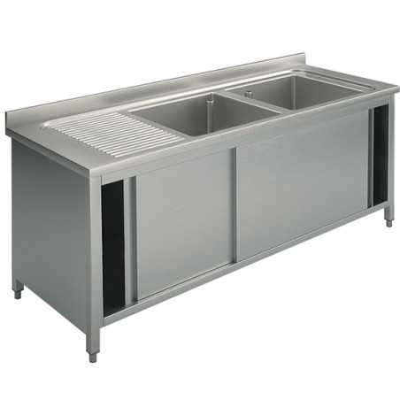 zoom_in -4%Plonge inox sur meuble - AISI 304 - 1800 (L) x 700 (P) x 900 (H) mm - Avec égouttoir - 2 bacs à droite