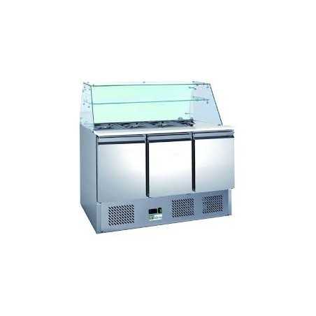 zoom_in -5%Saladette réfrigérée 3 portes vitre droite- Classe N -Gastromastro